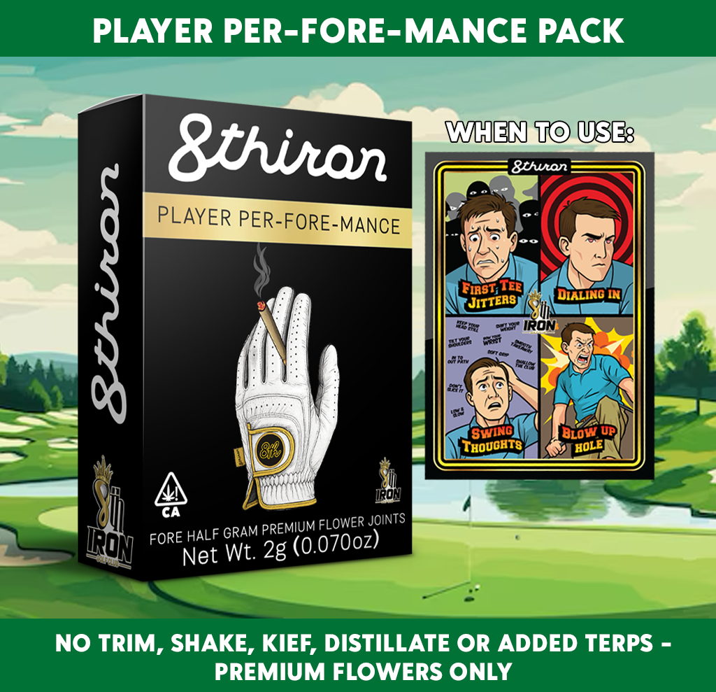 At 8th Iron Golf Club, we understand the profound challenges that golfers face on the course—from overcoming mental blocks to managing stress and anxiety. Our curated line of performance cannabis is specially formulated to enhance focus, promote relaxation, and aid recovery, providing golfers with the mental clarity and healing benefits needed to elevate their game. Each product is designed with the unique demands of golf in mind, ensuring that players can tackle the hardest and most frustrating aspects of the sport with confidence. Embrace a new approach to your game with our community-driven cannabis solutions, and experience the difference on every swing.